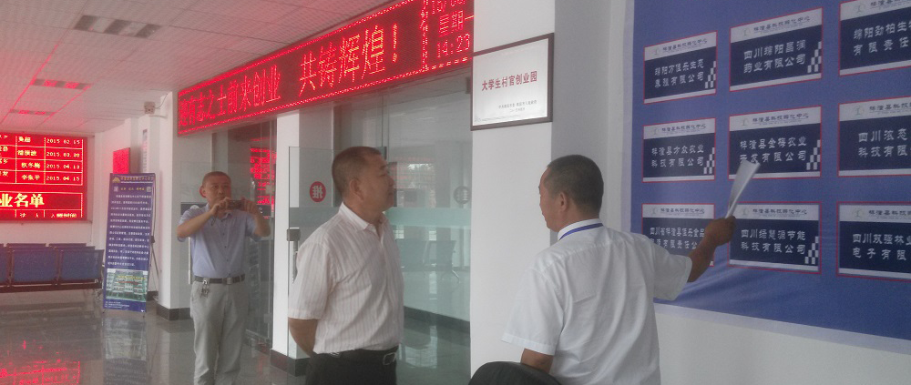 2015年6月8日下午,綿陽市政協(xié)副主席、市委統(tǒng)戰(zhàn)部部長苗平在梓潼縣縣委常委鄧志軍、梓潼縣政協(xié)副主席杜登元、綿陽市科技城科源科技有限公司董事長廖藝徽的陪同下到梓潼縣科技孵化中心視察調(diào)研。
