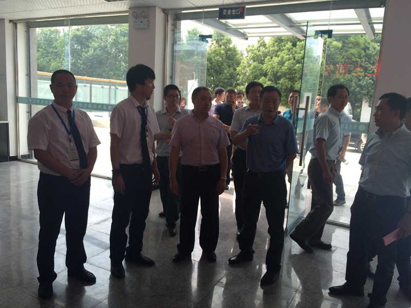 楊廳長(圖左二)一行領(lǐng)導(dǎo)駐足中心大廳參觀服務(wù)功能體系建設(shè)