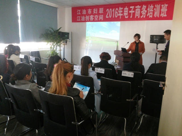 2016年3月18日,江油市創客空間迎來了江油市各鄉鎮的女性電子商務創業者100多名,參加培訓班的還有江油市婦聯歐主席、劉部長,中國網庫副總裁李琦、中國網庫導師王艷、導師張靜宇,創客空間經理鮮曉波,以及一些創客空間入孵企業代表,培訓會由創客空間經理鮮曉波主持。