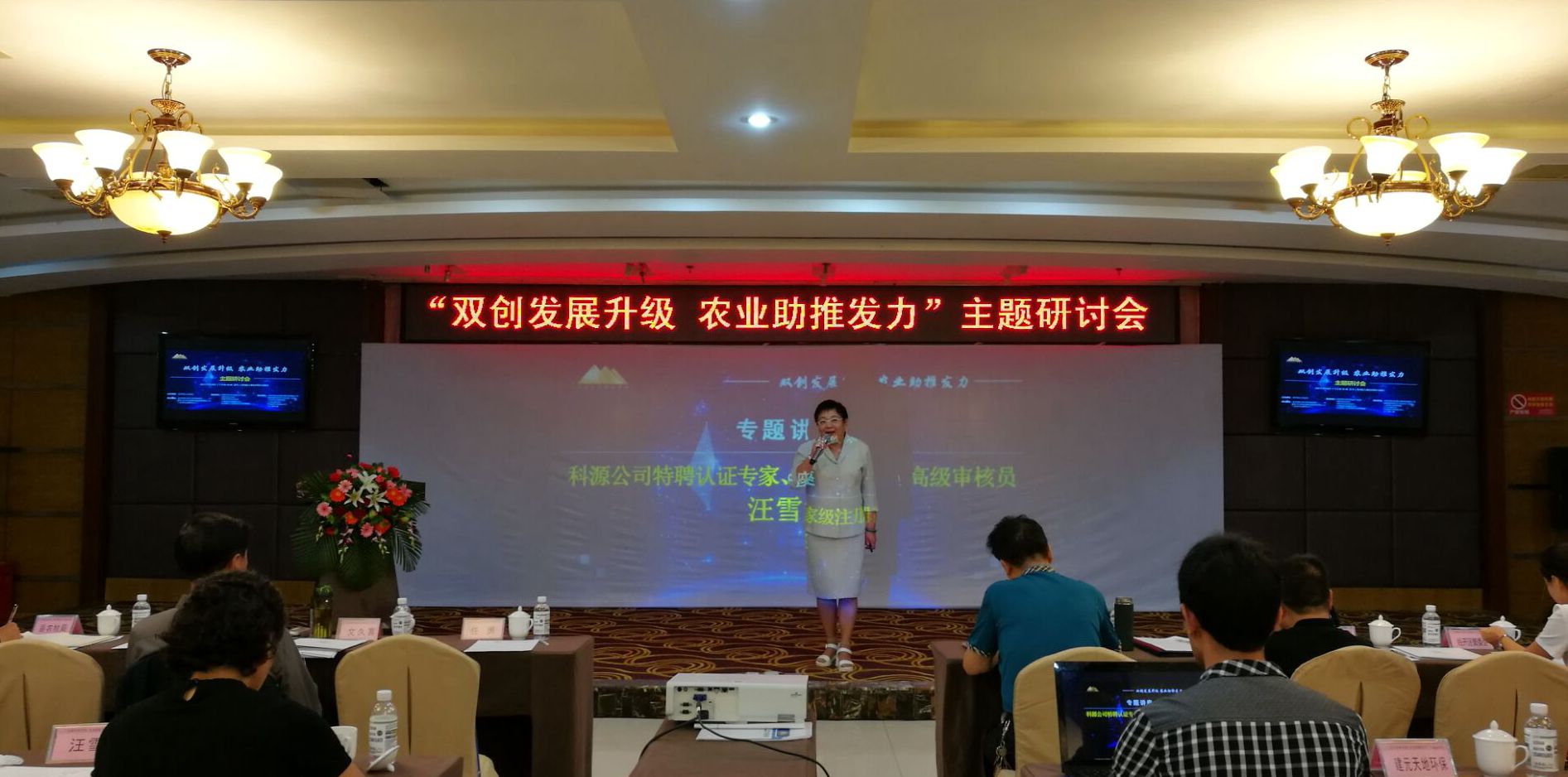 綿陽市農經站站長陳杰對《引導農村土地經營權規范有序流轉,發展農業適度規模經營》等內容進行了政策解讀;科源科技公司特聘專家、國家級高級注冊審核員汪雪霏女士圍繞《發展服務優勢,助力現代農業建設》進行了專題互動講座;科源科技公司董事長在會上宣布了科源科技公司為鹽亭創業孵化中心量身定做的創業融資等一系列服務保障措施及解決方案,掀起了大會的高潮,徹底激發出與會創業者的創業激情。