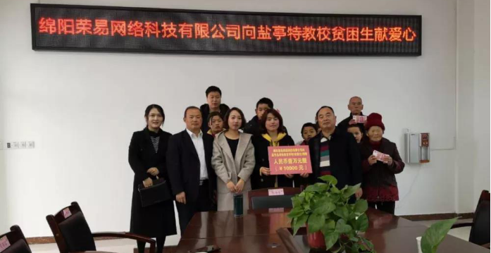 3月22日上午10時(shí),鹽亭創(chuàng)業(yè)孵化中心陳國攜入孵企業(yè)綿陽市榮易網(wǎng)絡(luò)科技有限公司經(jīng)理朱曉一行到縣特殊教育學(xué)校關(guān)愛慰問貧困學(xué)生,并送去愛心慰問款壹萬元。