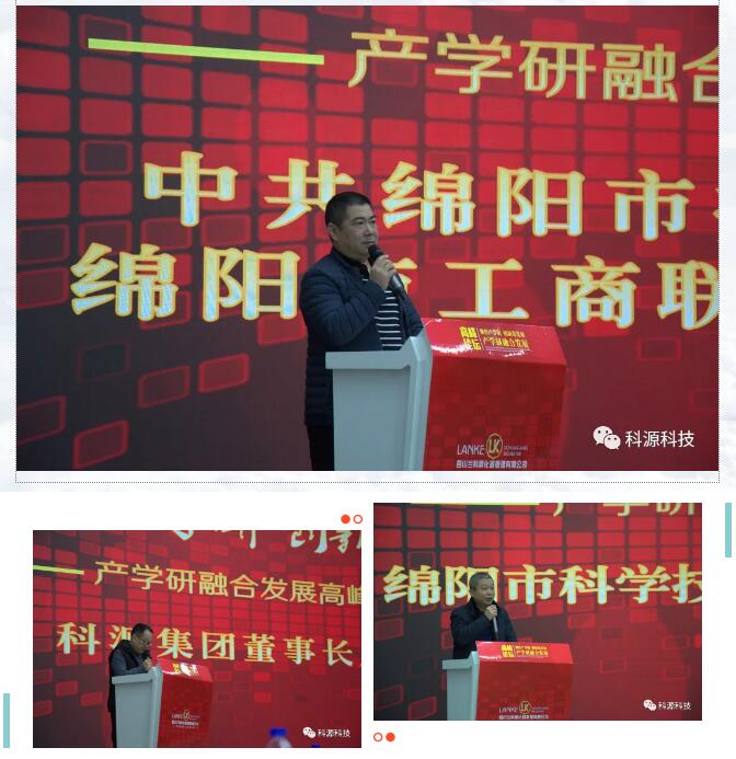 2019年12月5日上午,一場以“聚焦產學研 創新謀發展”為主題的產學研融合發展高峰論壇在綿陽高新區召開。中共綿陽市委統戰部副部長,工商聯黨組書記易顯云、綿陽市科技局調研員張科出席了本次會議。